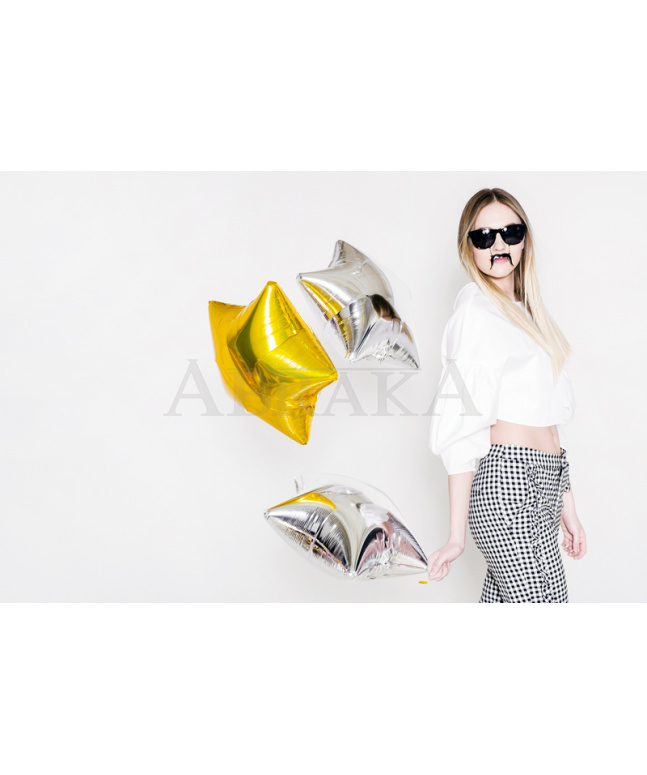 Fóliový balón v tvare hviezdy 48 cm - lesklá strieborná