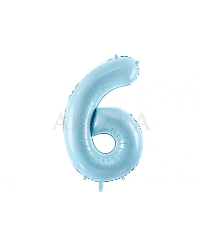 Veľký 86 cm modrý pastel fóliový balón v tvare čísla 6