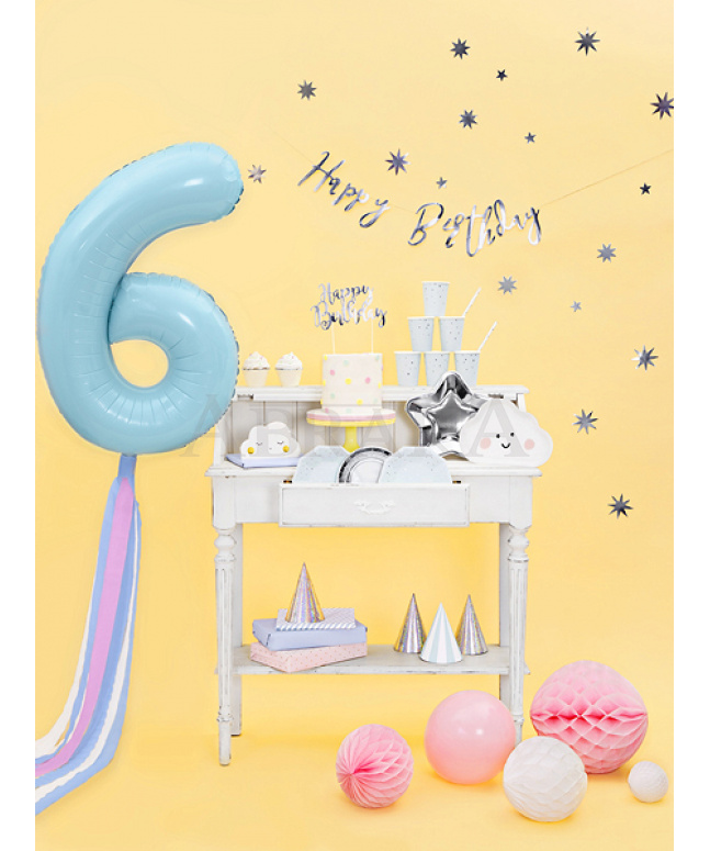 Modrý pastel fóliový balón číslo 6 - 86 cm