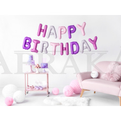 Fóliový balón - nápis Happy birthday fialový 340 x 35 cm