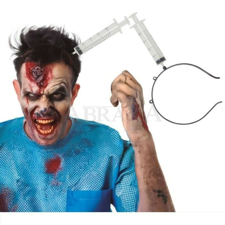 Hľadáte morbídny a šokujúci doplnok, ktorý zaručene vystraší vašich hostí? Táto injekčná striekačka „zabodnutá v hlave“ je ideálnou voľbou pre Halloween alebo hororovú párty!